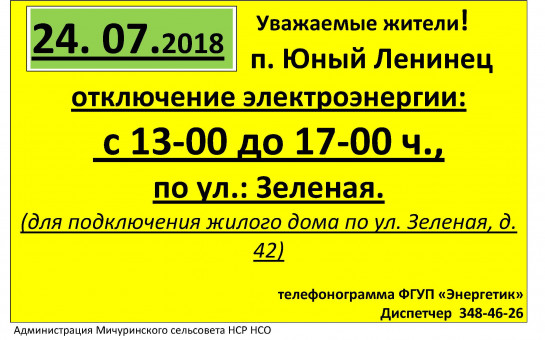 Отключение электроэнергии 24.07.2018 п. Юный Ленинец