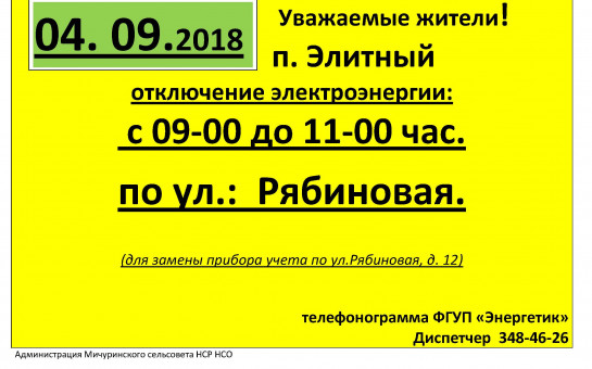 отключение эл./энергии 04.09.2018г. п. Элитный